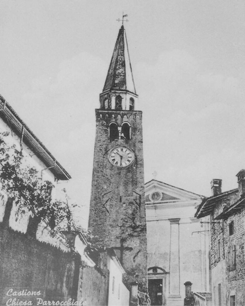 Ovviamente un fonte battesimale esisteva nella nostra chiesa già molto tempo prima del citato documento, tenendo conto che il primo edificio di culto in Castions risale senz’altro prima dell’anno Mille. Verosimilmente la chiesa originaria fu edificata tra i secoli VIII e IX e di sicuro aveva un proprio fonte battesimale se non un battistero forse in forma di vasca.