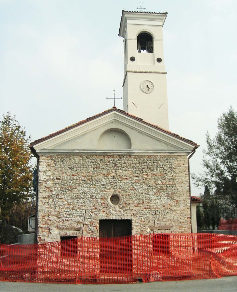 La forma cinquecentesca di sicuro conferita alla chiesa, si coglie in un portale di pietra la cui cornice è stata incastonata quale portone d’ingresso in un condominio, già scuole elementari del paese, in via Domanins. Evidentemente in seguito alla demolizione dell’edificio, avvenuta verosimilmente alla metà del secolo diciannovesimo, il manufatto lapideo è stato utilizzato come materiale d’impiego.