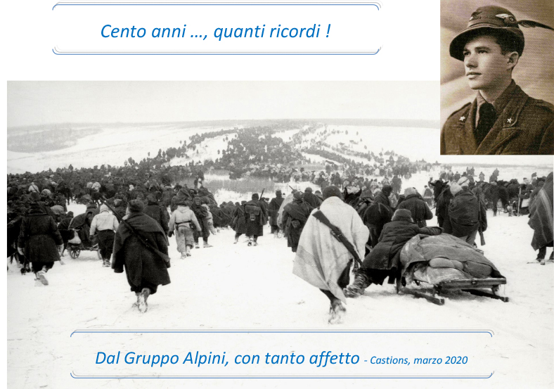 Alfredo, sei un esempio di longevità, di saggezza e di stile di vita. Tutti noi sappiamo la sofferenza e il dolore che assieme ai tuoi commilitoni durante la Campagna di Russia hai provato e che hanno lasciato dentro la tua anima un segno indelebile.